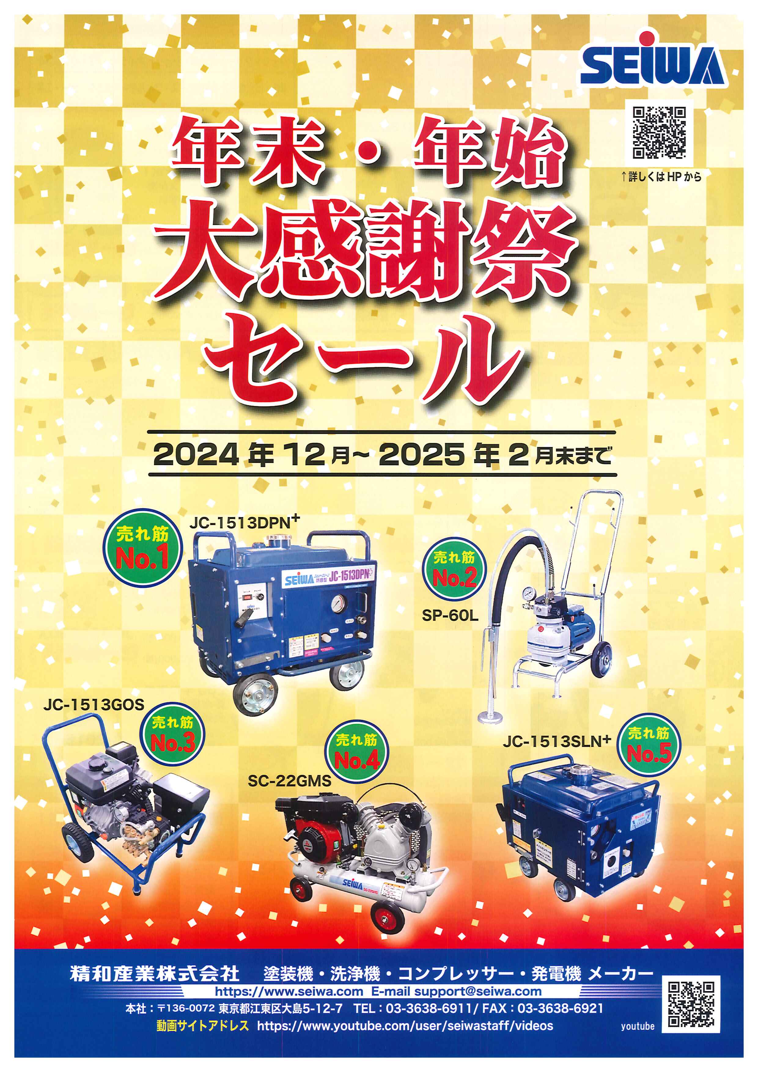 今月から2月末まで、精和産業㈱の年末・年始大感謝セールが始まっています。